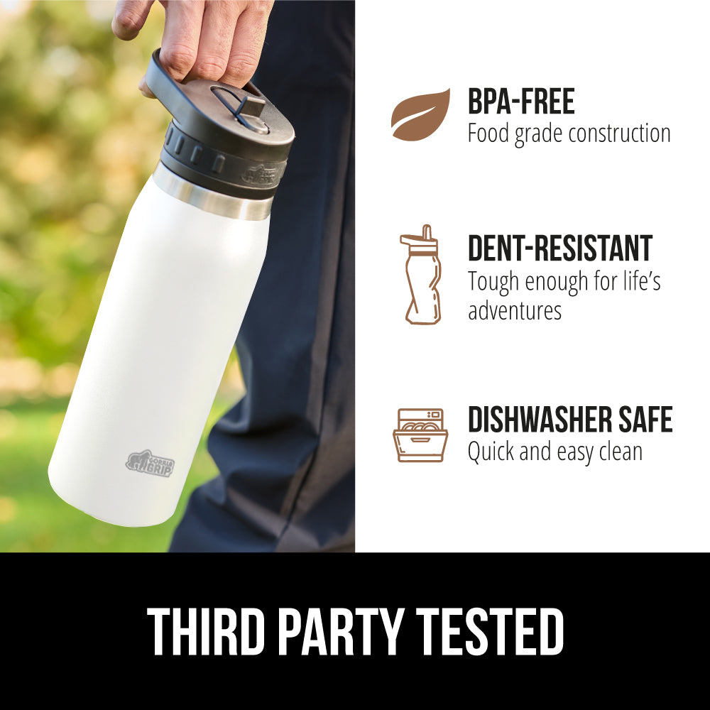 BPA FREE, DENT AND RUST RESISTANT: third party tested insulated bottle is BPA free and safe for food contact; extra durable construction resists denting and rusting for long lasting use; dishwasher safe for a fast clean