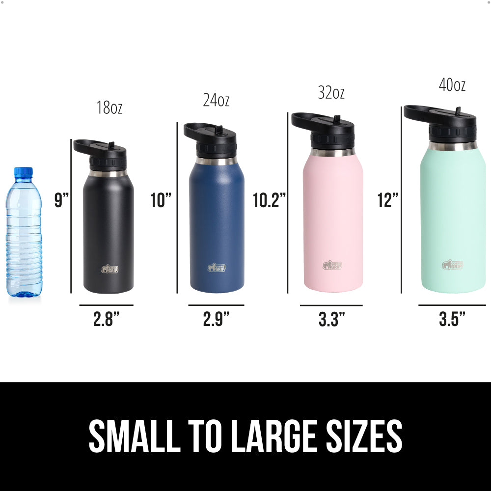 SMALL TO LARGE SIZES: available in four convenient sizes; 18oz, 24oz, 32oz, and 40oz to fit every need from quick sips to extended adventures;18oz and 24oz bottles fit in most car cup holders