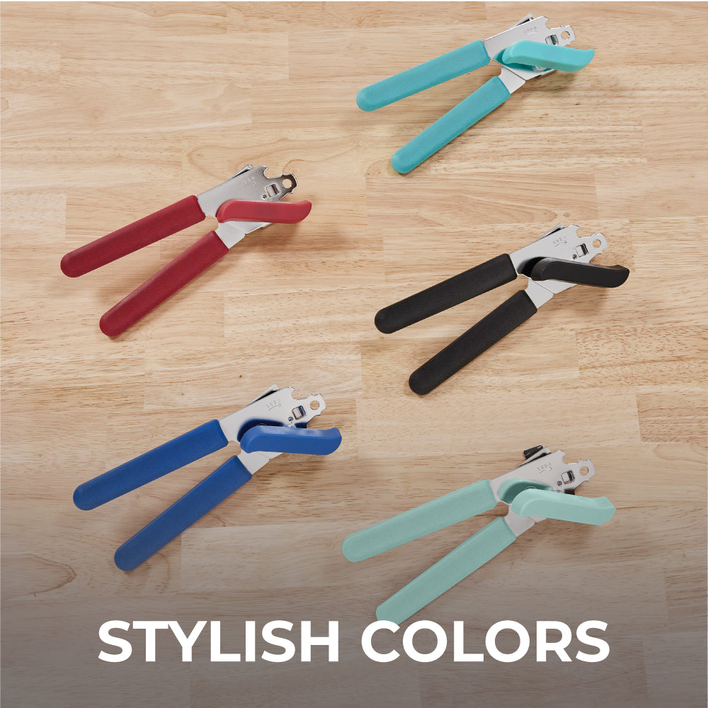 OVERSIZED, SLIP-RESISTANT TEXTURED HANDLES: uniquely designed with oversized, textured handles for a slip-resistant grip and comfortable hold; handles absorb more pressure and tension so you can open cans with ease