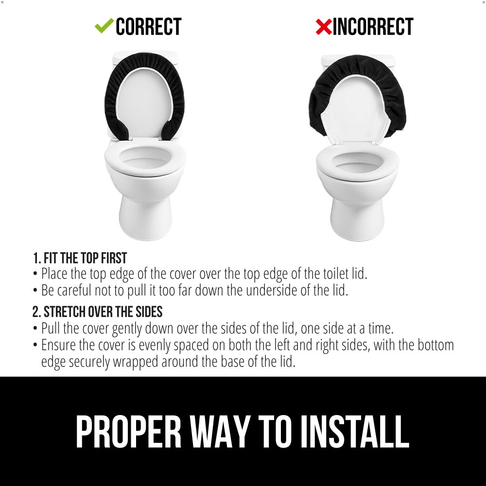 ELASTIC EDGING: strong elastic edges help cover to adjust to the shape of your toilet lid for a secure fit; elastic edges allow for easy install