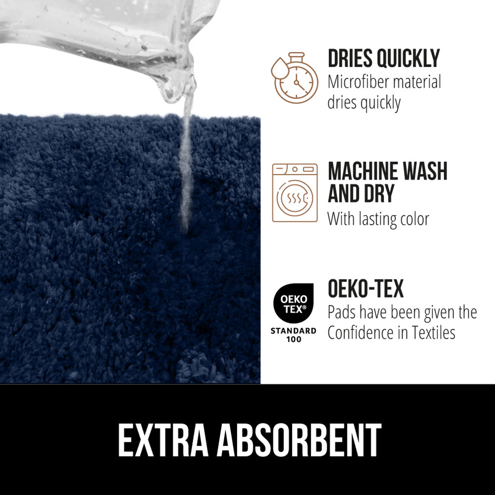 EXTRA ABSORBENT, DRIES QUICKLY: extra absorbent bath rug helps keep your floors clean and dry; premium microfiber material absorbs excess water and moisture from the bath, shower and sink while drying quickly and effectively